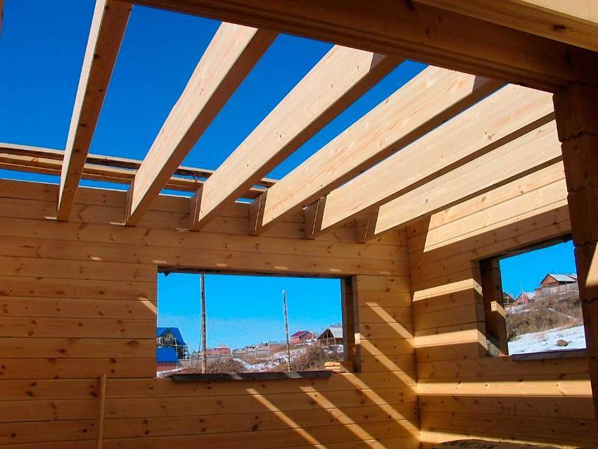 на деревянных балках или бревнах с максимальной длиной или шириной здания до 15 м, норма – 6 м;
