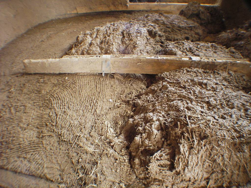 - Готовят состав из глины и соломы, взяв их в пропорции 2:3. Ее нужно тщательно перемешать до однородного состояния.