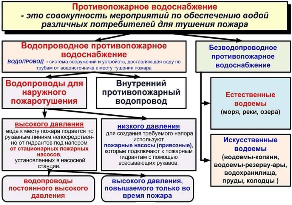 Условно существует два вида такого водоснабжения, не зависящие от назначения объектов, для защиты которых они предназначены: