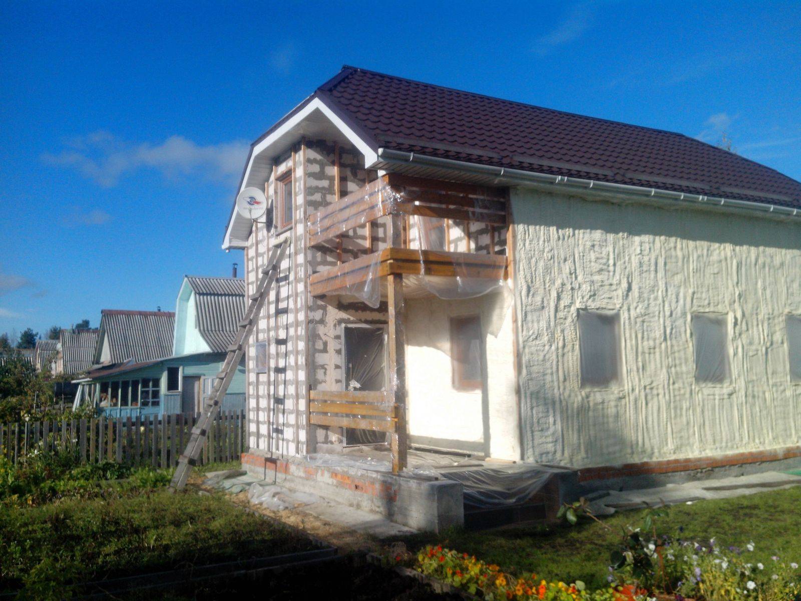 Но если бюджет позволяет, и вы все равно не планируете работать самостоятельно, то можно выбрать и способ утепления в виде напыления пены ППУ. Она позволяет создать очень теплый слой, который, правда, потом придется дополнительно защищать слоем декоративной отделки. Но газобетонные стены и без того будут требовать дополнительной защиты и облагораживания.