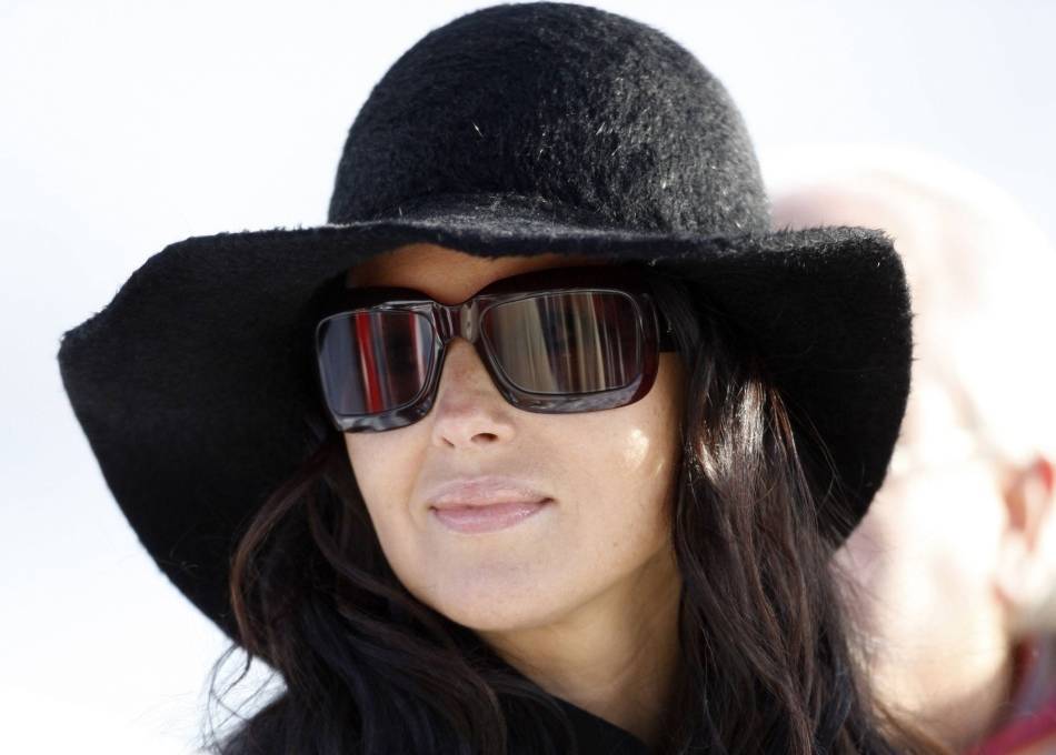 Стрелец Патрисия Каас в приталенном тёмно-синем пальто с крупными деталями