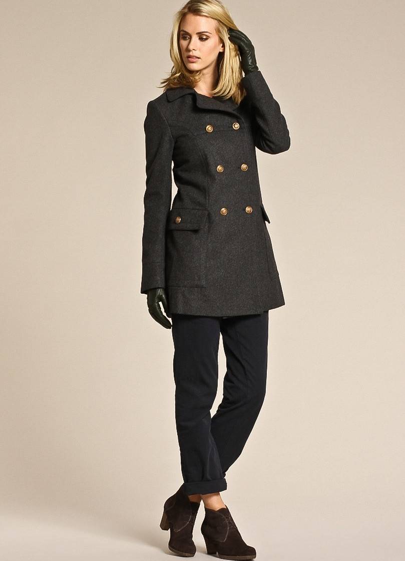 Если уж акцентировать внимание на деталях, то на крупных. Стрелец Патрисия Каас в приталенном тёмно-синем пальто с крупными деталями