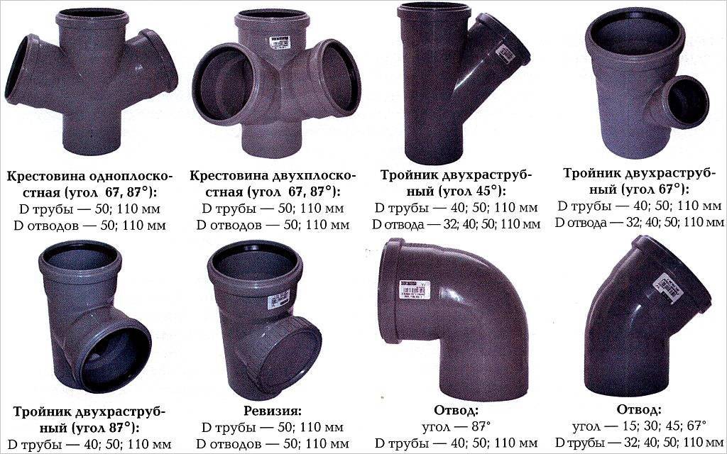 Диаметр труб для подключения точек должен соответствовать диаметру их выходного отверстия. Переход между трубами выполняют с помощью переходной муфты либо, при объединении труб от нескольких приборов, посредством тройников с разным диаметром ответвлений.