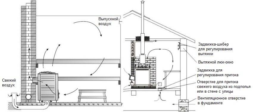 Схема естественной вентиляции в бане: