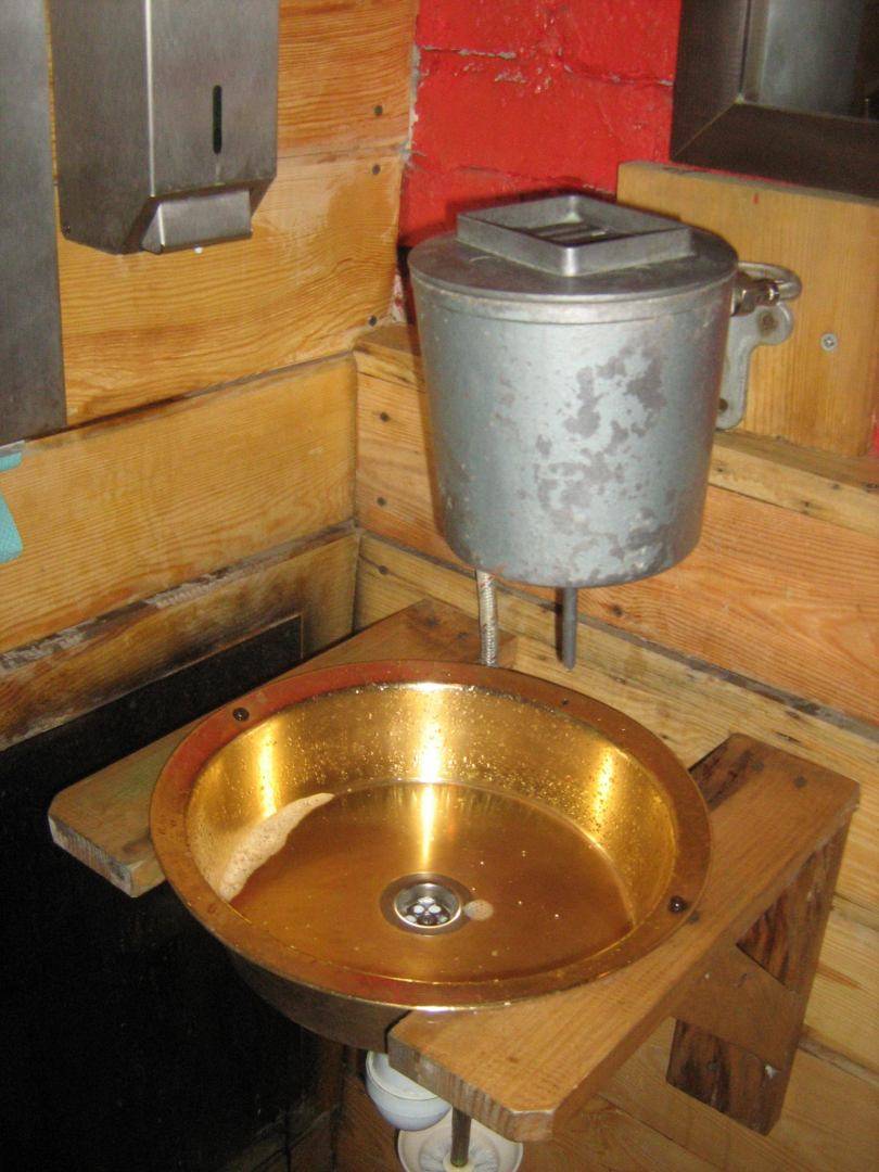 - Рукомойник с 15 л водонагревателем, изготовленный из нержавеющего металла с вентильным краном. Температура воды при нагреве достигает 70°, мощность тэновой установки составляет 1.25 кВт.
