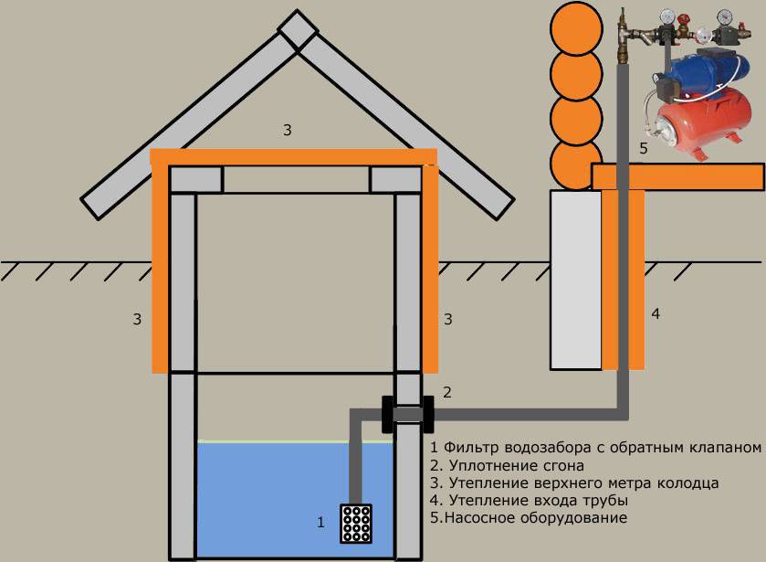 Оборудование, входящее в систему зимнего водопровода, не нуждается в утеплении, если расположено в приямке ниже уровня промерзания грунта