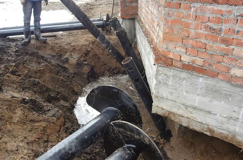 Начальные скважины бурят по периметру фундамента здания, на расстоянии не менее полутора метров от отмостки. Достаточно пробить три угловых ствола, чтобы понять, является ли причиной всех проблем давление грунтовых вод на стены ленточного фундамента. Только после установки откачивающего насоса через несколько дней можно приступать к строительству шурфов для обследования кирпичной, бутовой или бетонной стены фундаментного основания здания.
