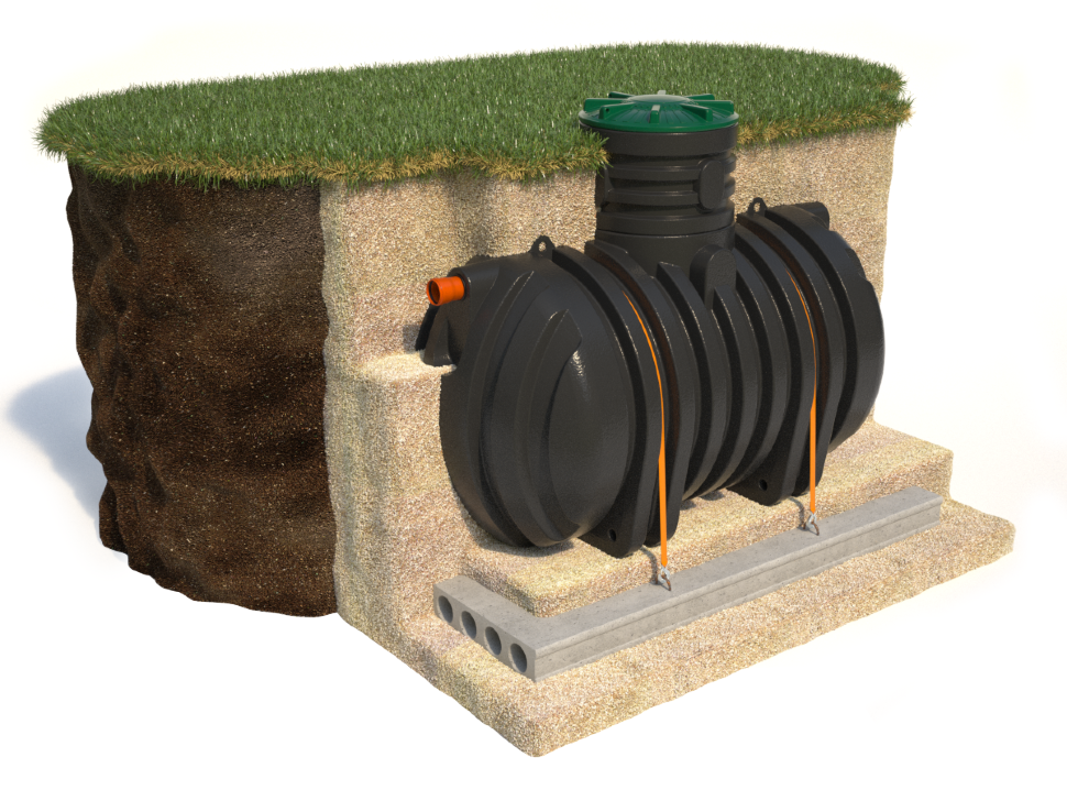 Монтаж энергонезависимых септиков осуществляется в предварительно вырытом котловане. При этом необходимо сделать якорение на бетонном основании. Это делается для того, чтобы препятствовать сдавливанию емкости, а также его всплытию во время паводка весной.