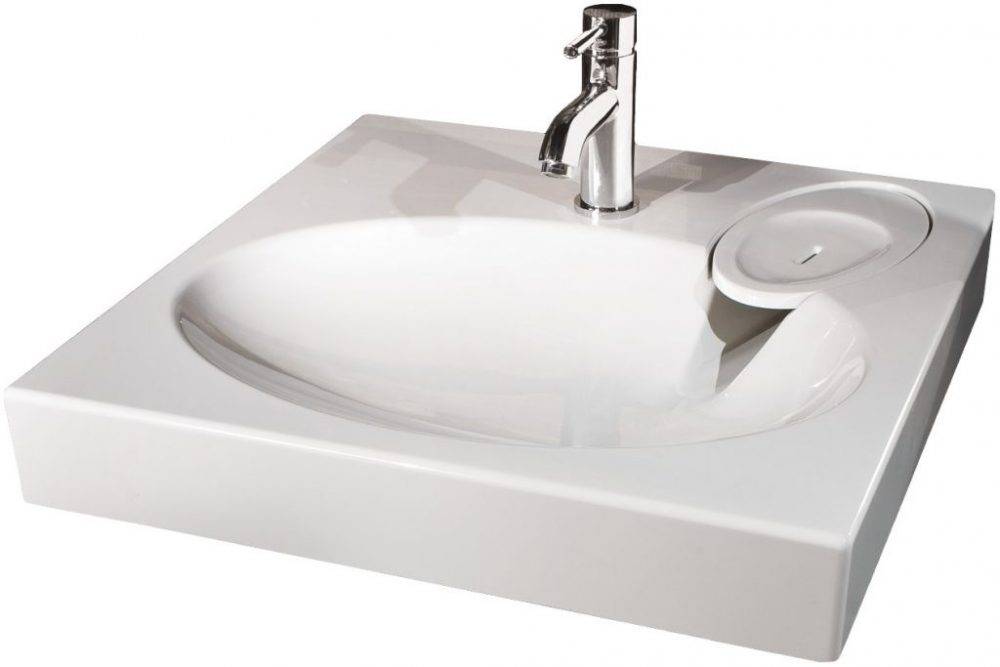 - Встроенная или накладная. Устанавливается на столешницу (тумбочку), экономит пространство. Коммуникации скрываются мебелью.