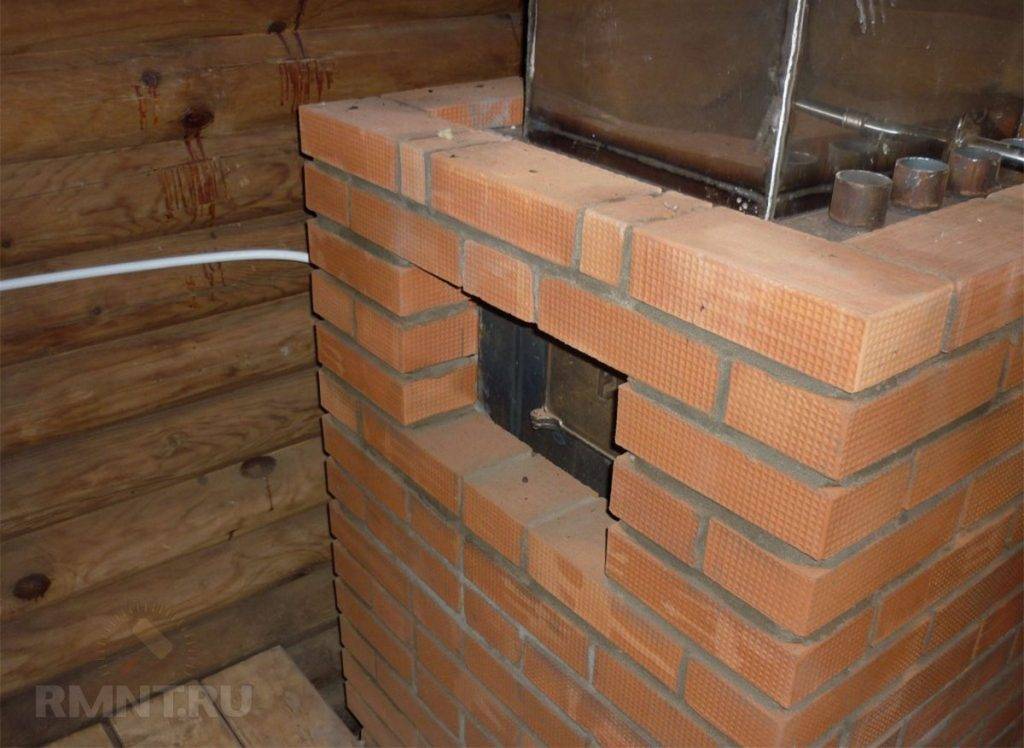 Экран из кирпича для банной печи-простой вариант защиты деревянных стен: