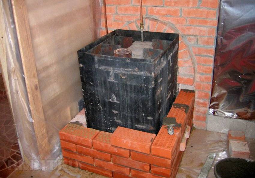 Кирпичный экран для металлической печи в бане