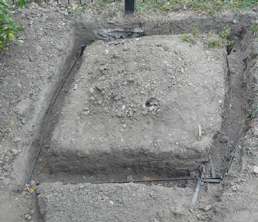 Также стоит дополнительно прокопать траншею такой же глубины для подвода полосы к зданию и выводу ее на фасад.