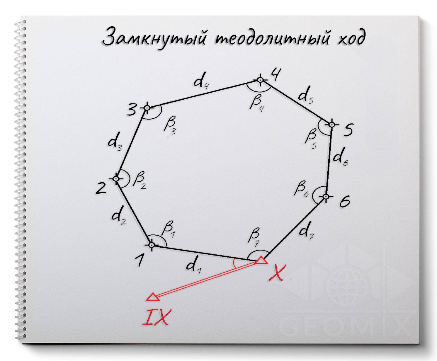 Замкнутый ход по своей сути является многоугольной фигурой и опирается только на один базовый пункт с установленными координатами и дирекционным углом. Вершинами стороны выступают точки, закрепленными на местности, а отрезками – расстояние между ними. Его чаще всего создают для съемки стройплощадок, жилых зданий, промышленных сооружений или земельных участков.